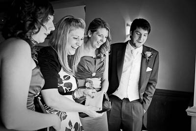 Admiring the board full of embarrassing photos of the bride and groom.